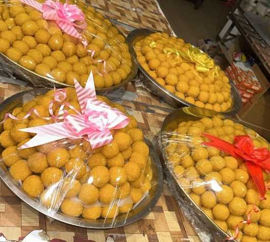 Grand assortments of premium sweets for wedding functions.